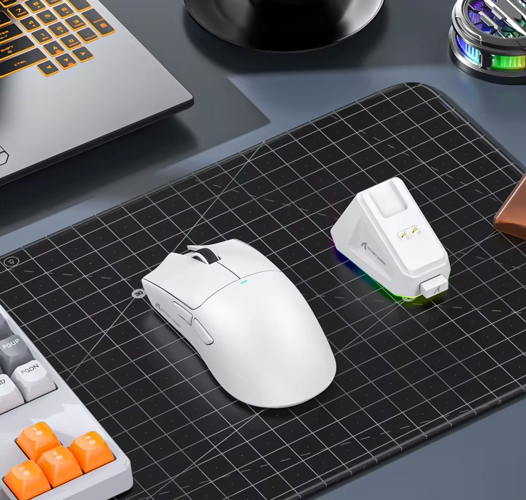 Su triple conexión (Bluetooth, 2.4G y USB-C) te permite usarlo en cualquier dispositivo sin límites, y su tasa de sondeo de 1000 Hz garantiza una respuesta inmediata en juegos competitivos. Además, incorpora 6 botones programables, macros, y una rueda TTC dorada para un control firme y fluido.